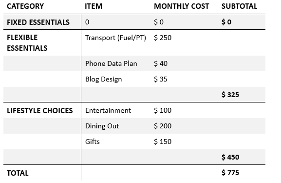 I know it may seem pointless trying to cut costs as I already save a fair amount due to the absence of fixed essentials, however it is good practice to get into the habit of stress-testing spending to achieve a goal so that when Fixed essentials do come in-to the equation, I am not left struggling to cut costs to save.