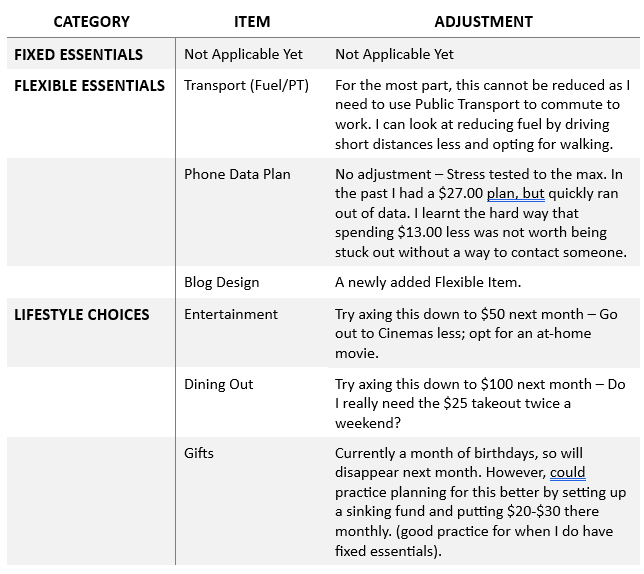 For the most part, my baseline has been stress-tested. Since I do not have Fixed essentials, it has been easy to adjust – I know this won’t be the truth for everyone out there.